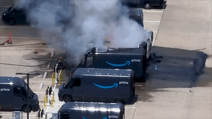 Auf Drohnenaufnahmen ist zu sehen, wie Feuerwehrleute offenbar darum kämpfen, den Brand zu löschen.