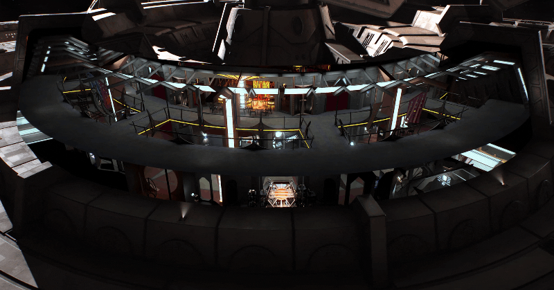 Schnappen Sie sich einen Jumja-Stick und lassen Sie sich von Quark persönlich durch einen der wichtigsten Orte in Star Trek :Promenade von Deep Space Nine.