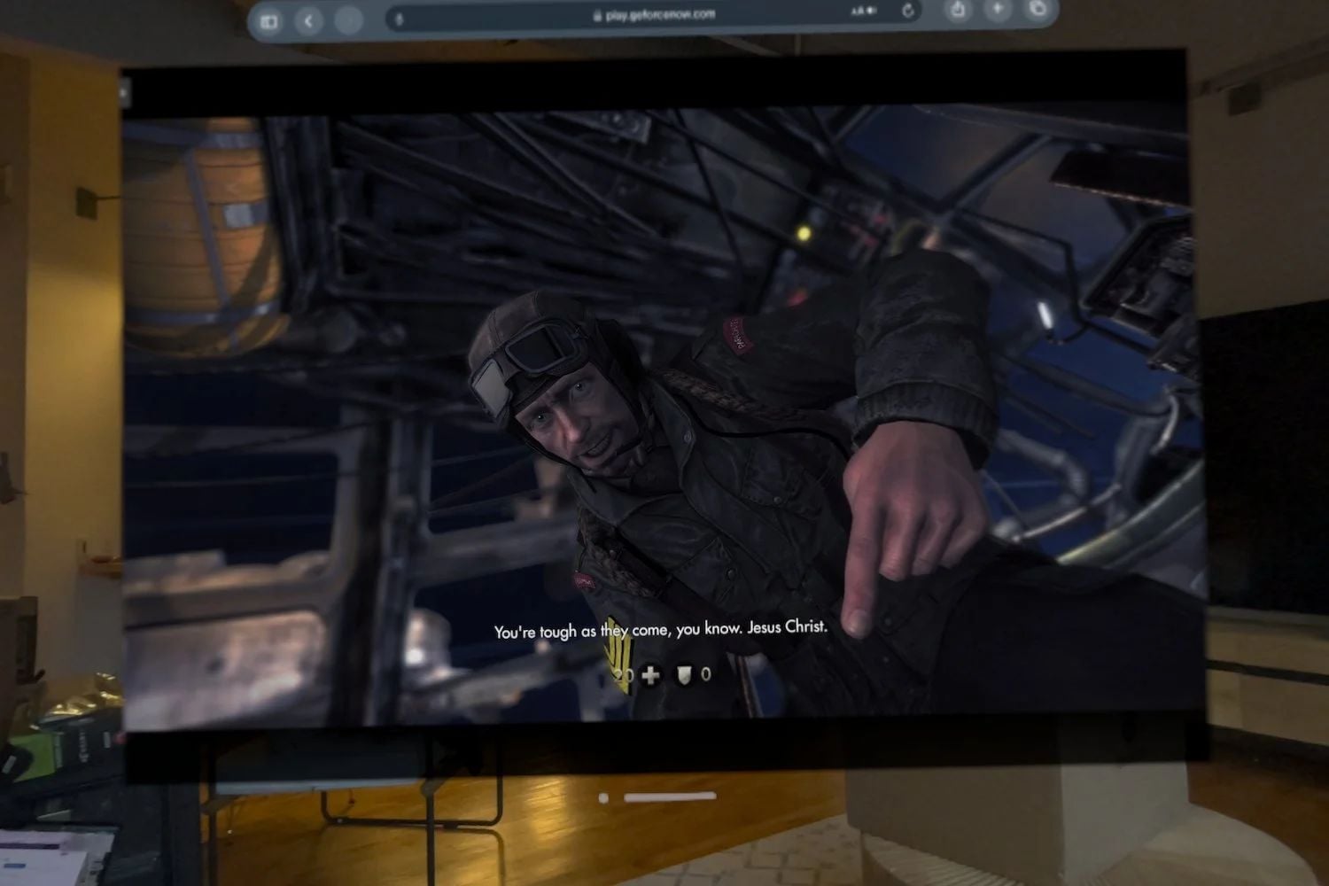 Ich möchte, dass Spiele die hochauflösenden Linsen des Vision Pro und das 100-Grad-Sichtfeld nutzen. Das Safari-Fenster kann ziemlich groß werden, genug, um eine ganze Wand zu füllen, aber es ist nicht das gewölbte Breitbild-Erlebnis, das das Streaming auf dem Vision Pro zum Leben erwecken würde. Der Dienst zwingt die Benutzer, die Qualitätseinstellungen manuell zu ändern, um die versprochene 4K-Auflösung zu erzwingen. Ich war auch auf 60 FPS beschränkt, wahrscheinlich aufgrund der maximalen Bildwiederholfrequenz von 100 Hz auf den Displays des Vision Pro.